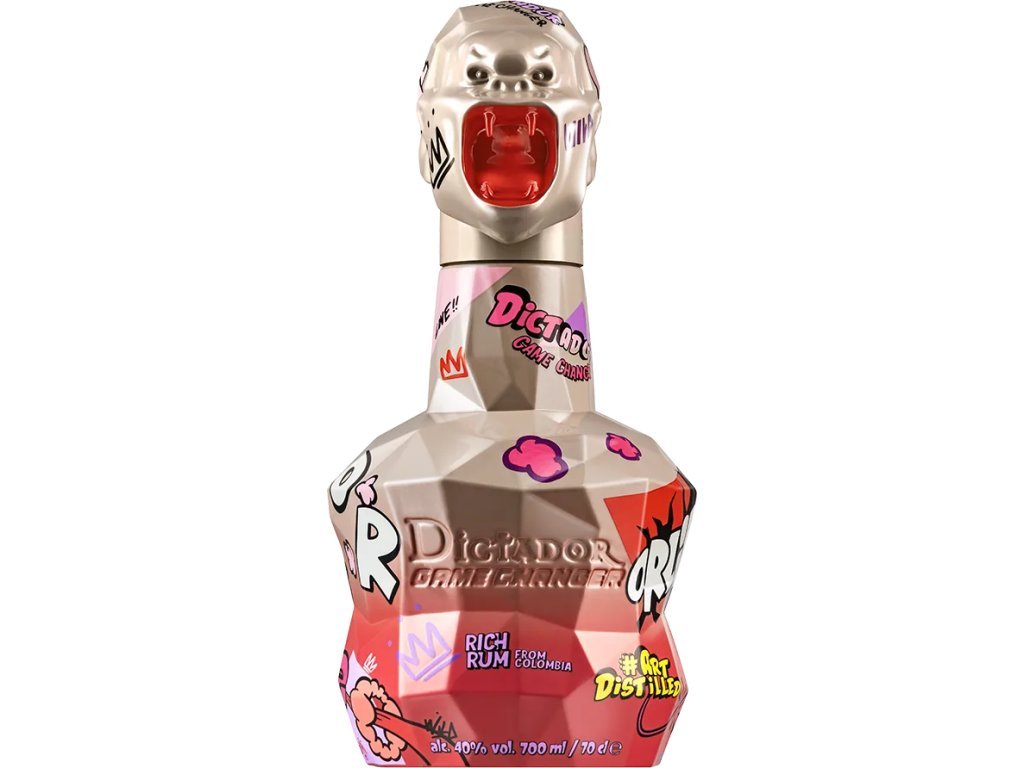 Dictador Game Changer byl navržen vizionářem Richardem Orlinskim, ikonickým francouzským sochařem a DJem, jehož kreativní genialita nezná hranic. Je to moderní mistrovské dílo, vzrušující prohlášení tekuté geniality, estetické krásy a šarmu, která mění svět současných prémiových destilátů. Ikonický tvar láhve Dictador je spojený s brilantní uměleckou vizí Richarda Orlinskiho – uzávěr ve tvaru hlavy Konga, živé street artové výbuchy barev na povrchu láhve – každý detail odráží vášeň a kreativitu.