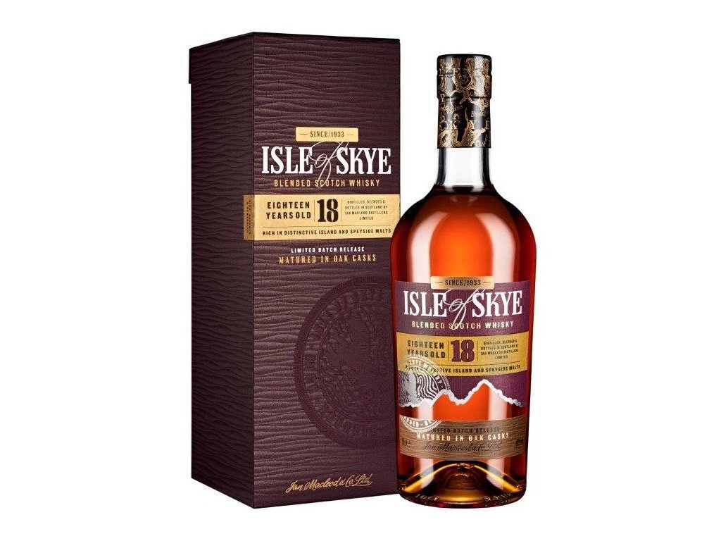 Oceněná 18ti letá Isle of Skye, která se vyznačuje skořicí a angreštem na nose, následovaným jemným kouřem, který ustupuje citrusům a karamelu.