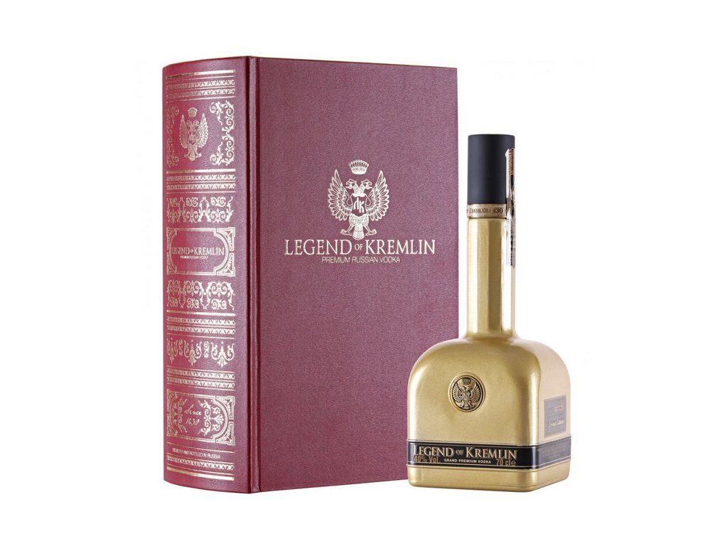 Limitovaná edice vodky Legend of Kremlin ve stylovém knižním boxu je vyrobená ze speciálního obilného destilátu "Lux" (ten obsahuje 96,5% alkoholu) a měkké vody artézské studny.