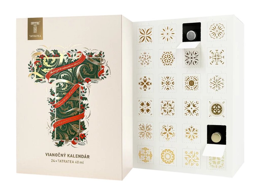Kalendář obsahuje: 2 x Tatratea 22% Coconut, 2 x Tatratea 32% Citrus, 3 x Tatratea 42% Peach, 4 x Tatratea 52% Original, 3 x Tatratea Forest Fruit 62%, 2 x Tatratea 72% Outlaw, 2 x Tatratea 37% Hibiscus & Red Tea, 2 x Tatratea 47% Flower, 2 x Tatratea 57% Rosehip & Sea Buckthorn, 2 x Tatratea 67% Apple & Pear.