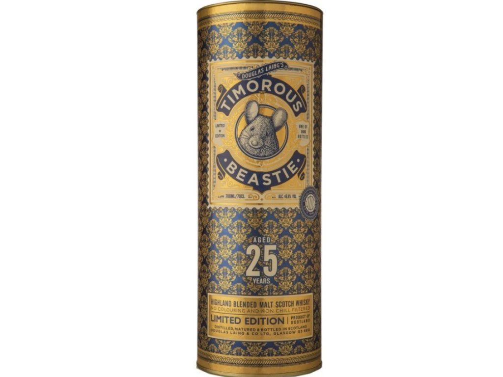 Timorous Beastie 25 Years Old je Single Malt z oblasti Highland, který dozrál k dokonalosti, bez dobarvování nebo chill-filtrace. Vydáno pouze 1600 kusů. V lahvích o obsahu alkoholu 46,8% najdete sladkou vanilku, marmeládu a voštinu. Sedmé vydání pod značkou, které nese věkové prohlášení, přichází po lahvích Timorous Beastie 18 let, 40 let, 21 let, 24 let, 10 let a 12 let. Výbuch vanilky na nose s vlhkým dubem, pikantní marmeládou a ječmenem. Chuť je máslová a pokrývající ústa zázvorem, hnědým cukrem a krémovými cereáliemi. Závěr je dlouhý s jemným kořením a vanilkou.